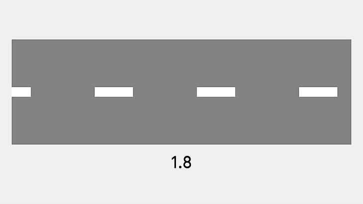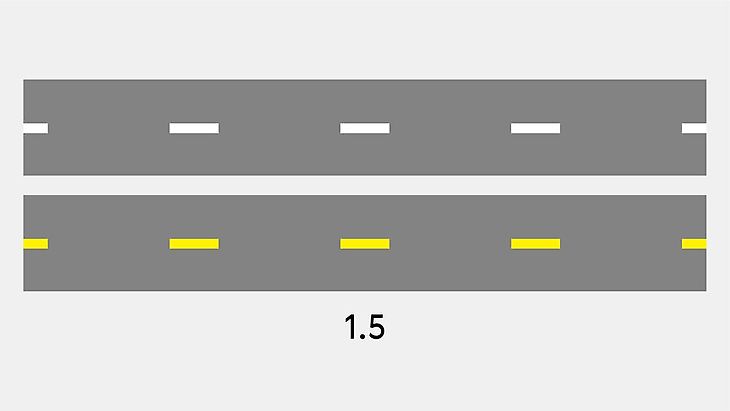 В случае с линиями, применяемыми в разметке 1.5, каждая черта по длине в 3 раза меньше, чем расстояние до следующей. Разметка показывает границу полосы или отделяет «встречку». В случае, если маневр будет безопасен и не нарушит движение транспортного потока, пересечение линии допустимо.