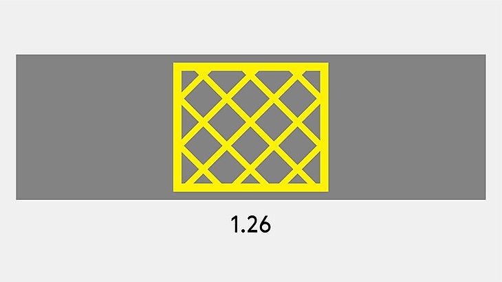 Разметку 1.26 можно найти на перекрестке. Въезд на нее недопустим, если на перекрестке образовался затор. С помощью этой желтой разметки выделяются зоны, где остановка транспортных средства может затруднить движение транспорта в иных направлениях.