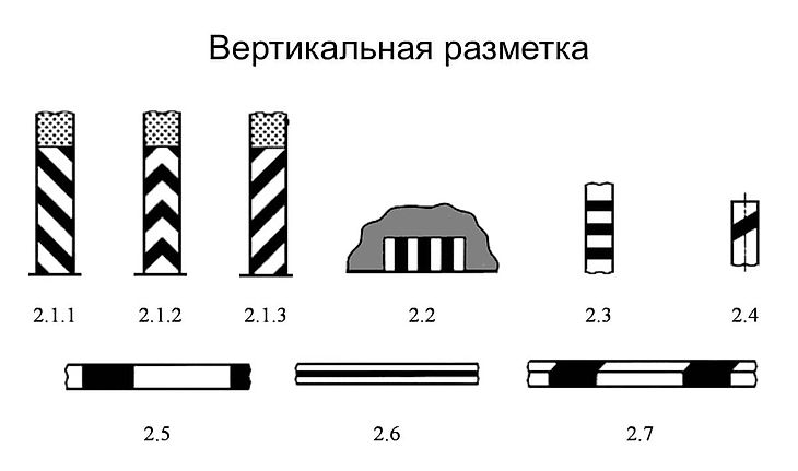 С помощью вертикальной разметки отделяют границы сооружений, установленных у самой дороги. Полосы черно-белого цвета привлекают внимание автолюбителей, к тому же на них нанесен специальный светоотражающий состав. Пользу подобных элементов можно обнаружить ночью, а также при неблагоприятных погодных условиях.