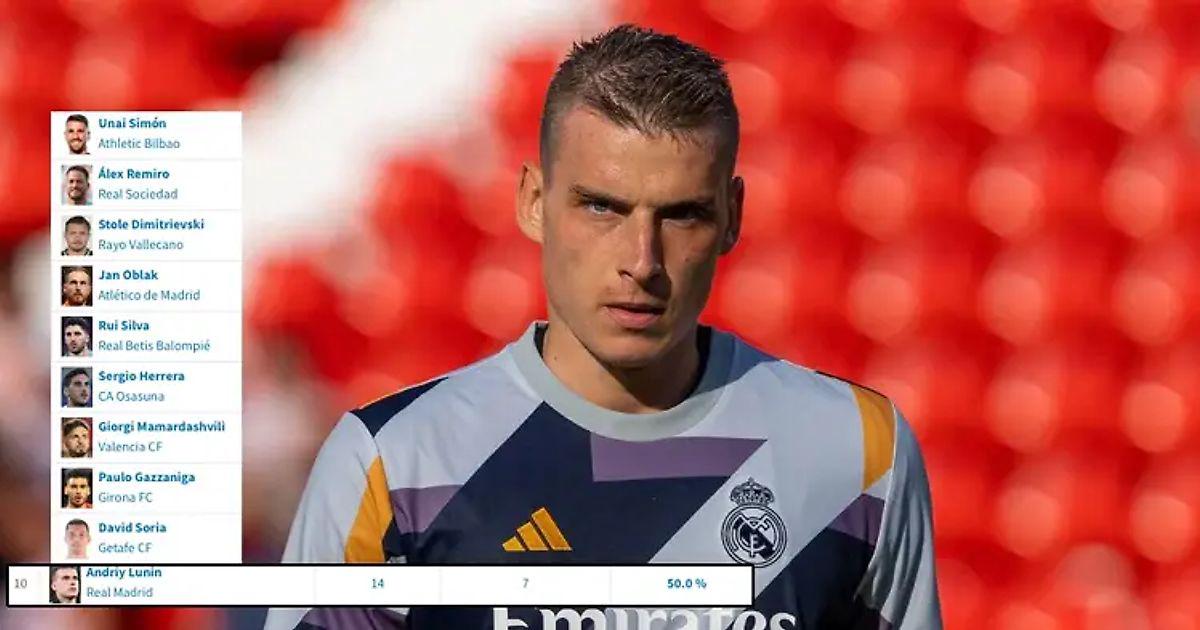 Лунин − лучший по проценту «сухих» матчей в Ла Лиге. Он один из лучших в Европе по другому показателю