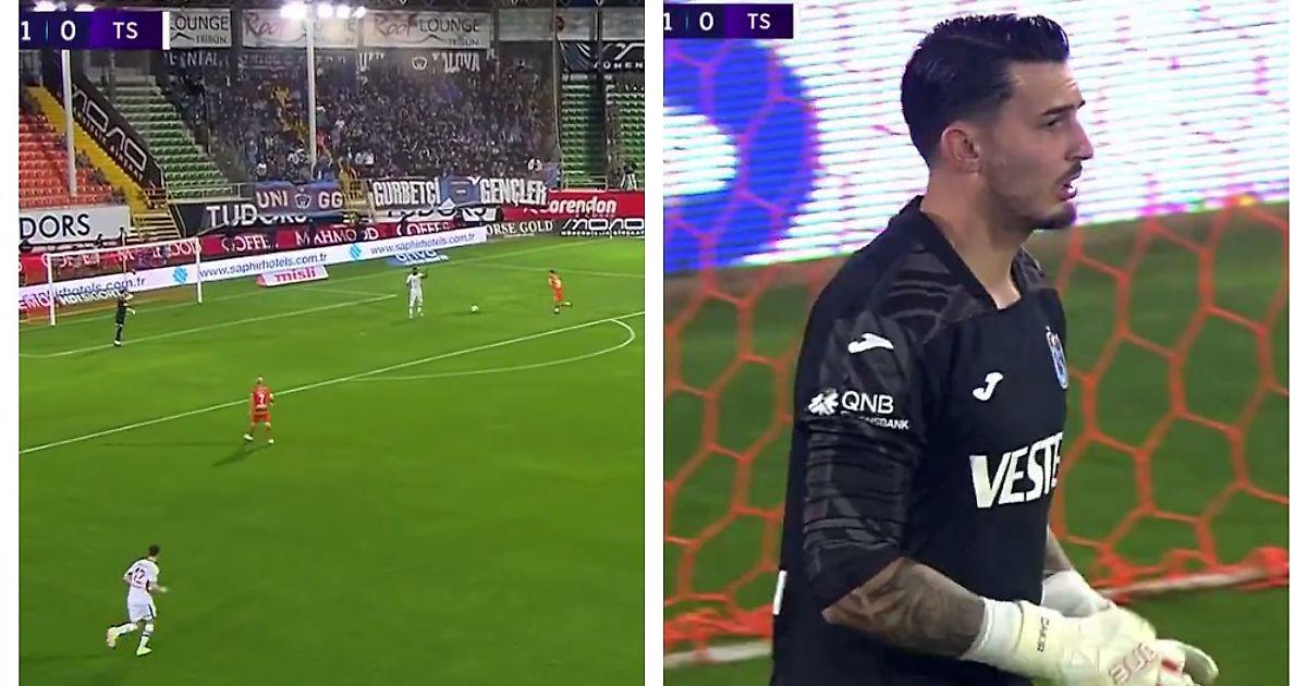 В матче «Аланьяспора» и «Трабзонспора» вратарь гостей при счете 0:1 Угурджан Чакыр пытался разыграть мяч с собственным защитником, но тот оказался слишком занят.