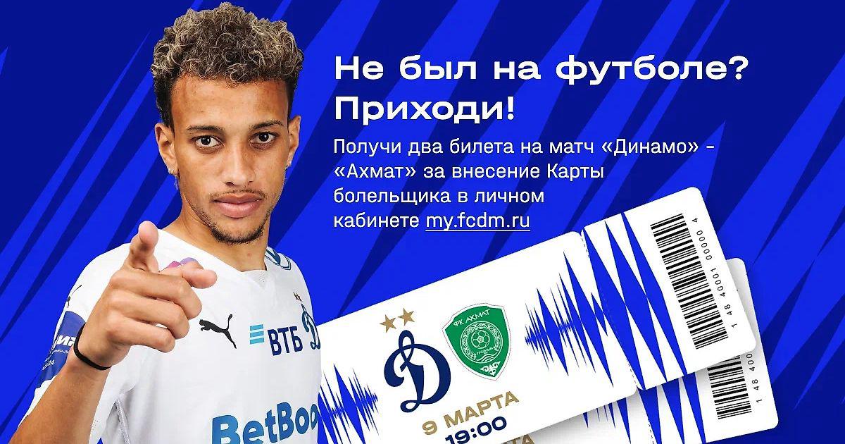 «Динамо» запустило акцию для новых болельщиков к матчу РПЛ с «Ахматом»: как получить два бесплатных билета?