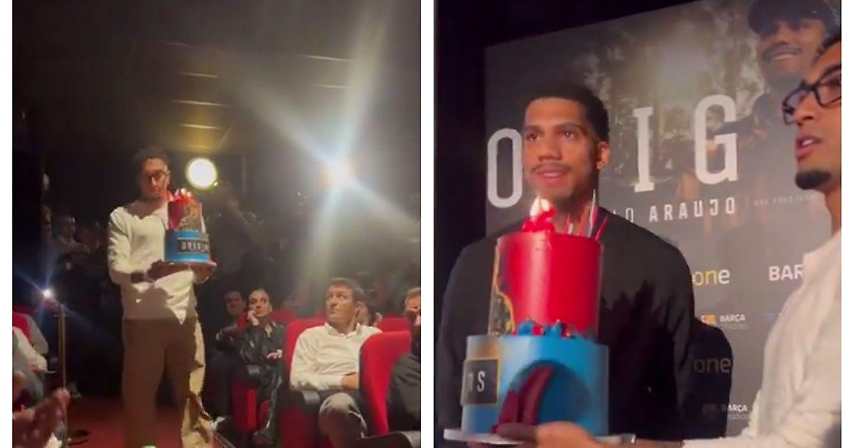 Команда поздравила Араухо с днем рождения - праздничный торт доверили выносить Рафинье