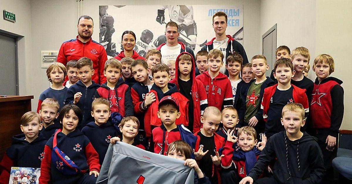 Сначала в пресс-центре малой арены ребята задали свои вопросы, а потом опробовали полученные знания на практике. Хоккеисты системы ЦСКА вместе провели разминку, а затем помогли провести тренировку с тренерским штабом.