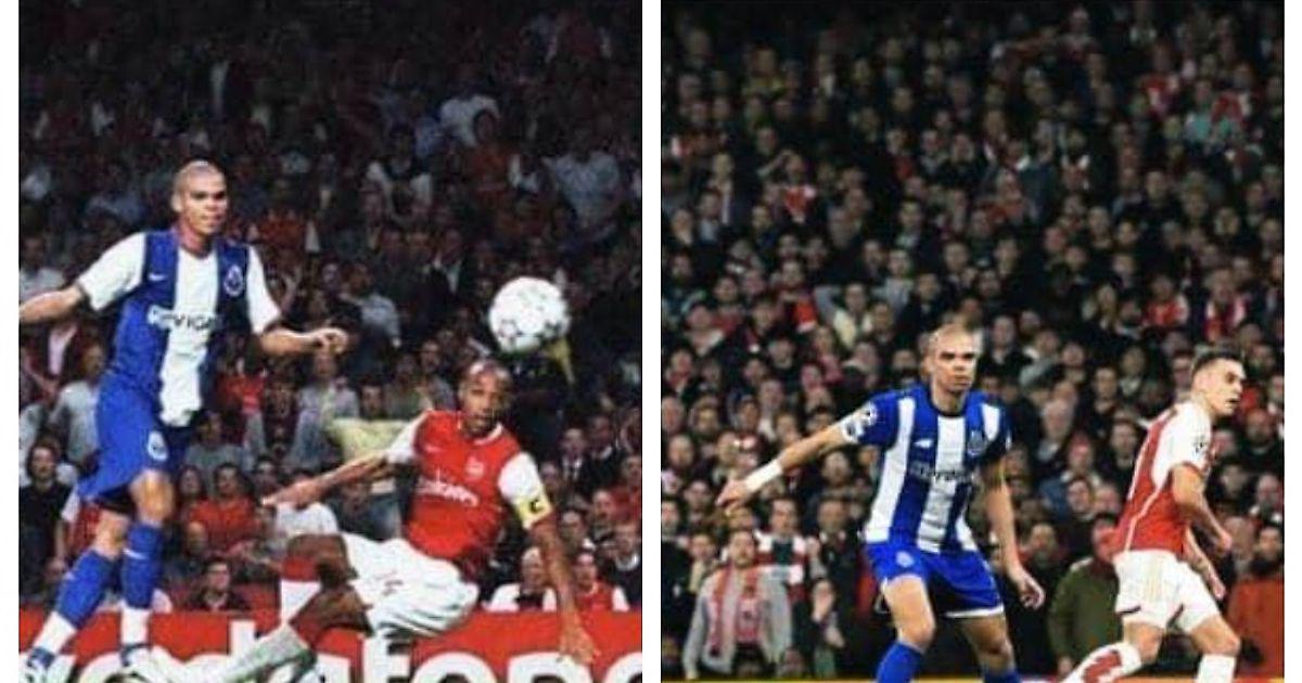 Возможно последним матчем плей-офф ЛЧ для португальца стал матч с «Арсеналом», на котором один из фотографов сделал кадр, удивительным образом повторяющим момент 18-летней давности - тогда Пепе противостоял Тьерри Анри.