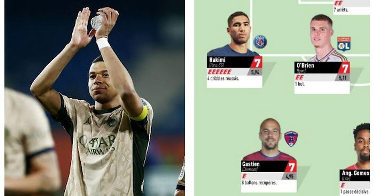 Неудивительно, что и Мбаппе, а также Хакими и Витинья попали в состав символической сборной Лиги 1 от l'Equipe по итогам 26 тура.