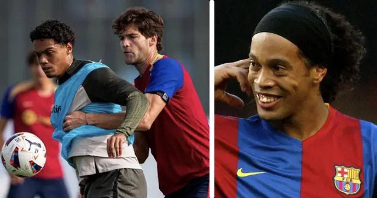 Сын Роналдиньо присоединяется к тренировке основной команды «Барсы»