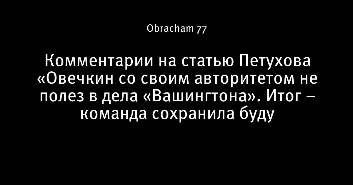 Комментарии на статью Петухова «Овечкин со своим авторитетом не полез в дела «Вашингтона». Итог – команда сохранила буду