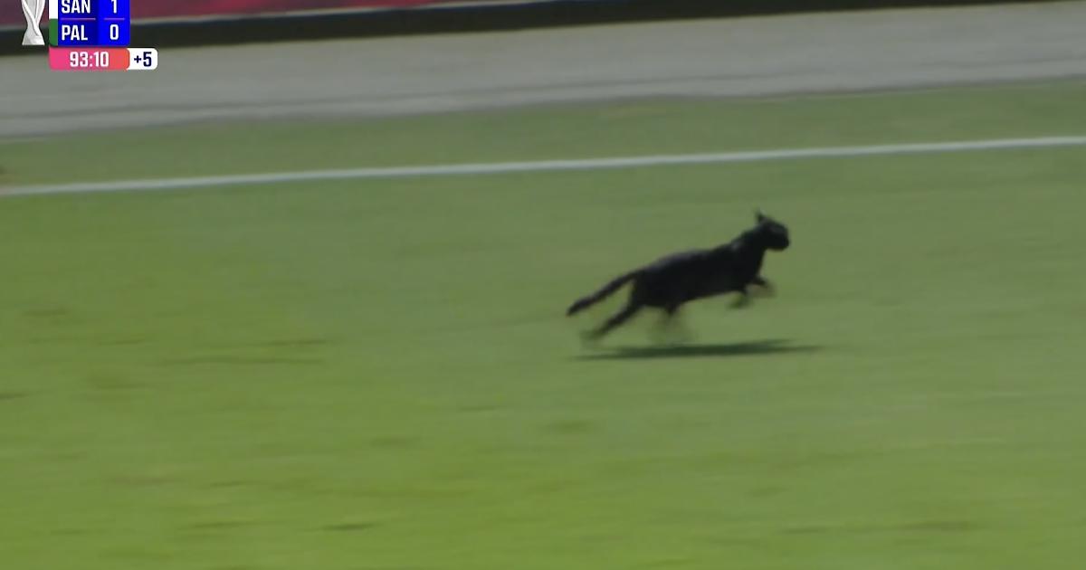 На последних минутах матча «Сантос» – «Палмейрас» на поле выбежал черный котик.