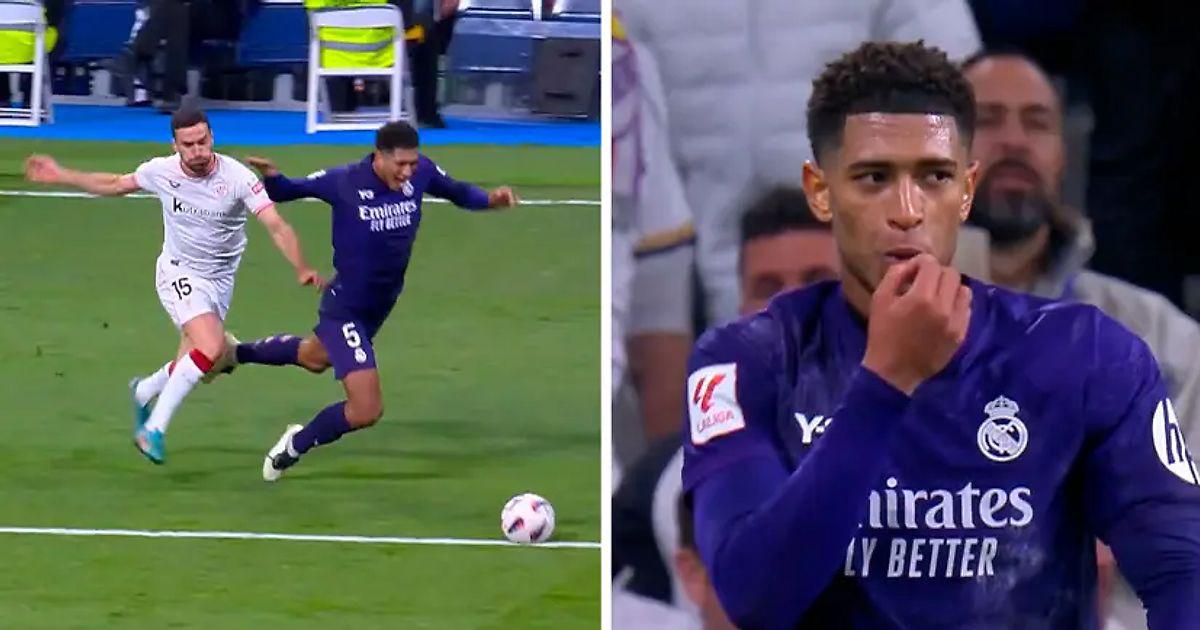 Джуд Беллингем прорывался в штрафную, но его свалил Иньиго Лекуэ. Казалось, очевидный фол – но судья проигнорировал.