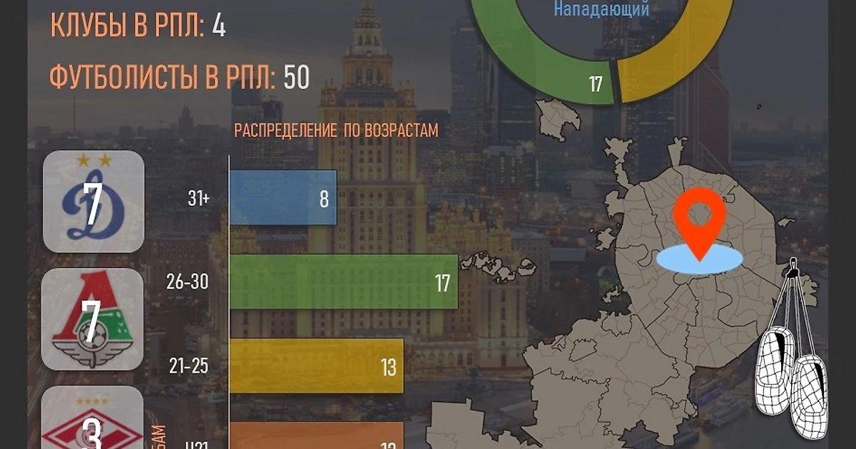 Начнем, конечно, со столицы - тут и народу больше всего и с клубами нет проблем (потому как в одном топовом регионе в РПЛ клуба нет).