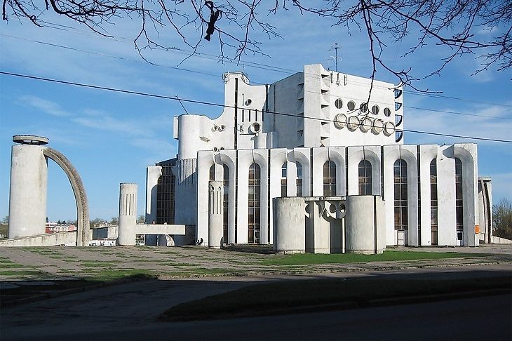 Одно из самых необычных зданий в городе. Театр появился в Великом Новгороде в 1987 году. Главным архитектором проекта назначили В. А. Сомова. Автор проекта придерживался стиля советского модернизма, а театр драмы один из ярких представителей этого стиля.