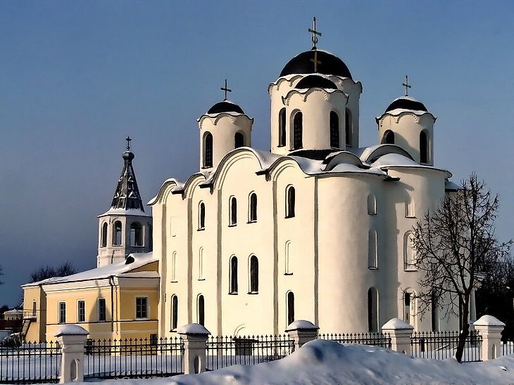 Вместе с торговыми лавками стал формироваться и монументальный архитектурный ансамбль. Некогда на Ярославом дворище располагались палаты великокняжеских наместников. К сожалению, они не сохранились до наших дней. Также было построено множество храмов, и частью из них можно полюбоваться и в наши дни. О некоторых из них мы расскажем подробнее дальше.