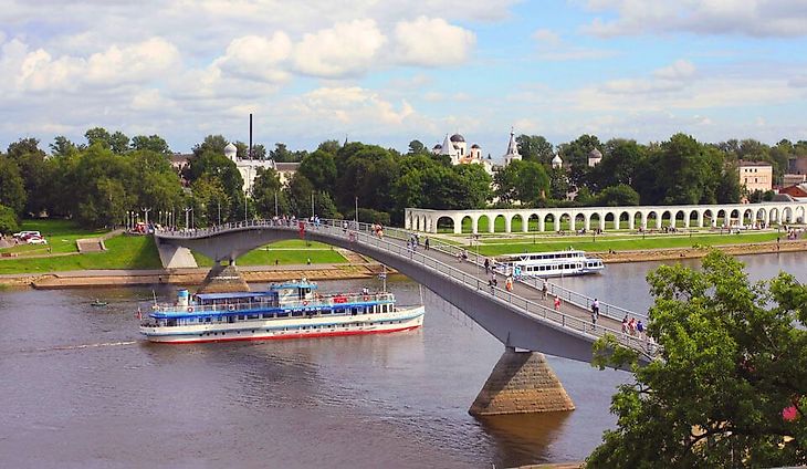 За более чем тысячелетнюю историю не изменилось то, что город пересекает река Волхов. Дабы преодолеть эту водную преграду, уже в XII веке был построен первый мост. Этот факт отмечен в летописях. Пешеходный мост существовал и всячески видоизменялся вплоть до 1944 года – в тот год его взорвали отступающие германские войска.