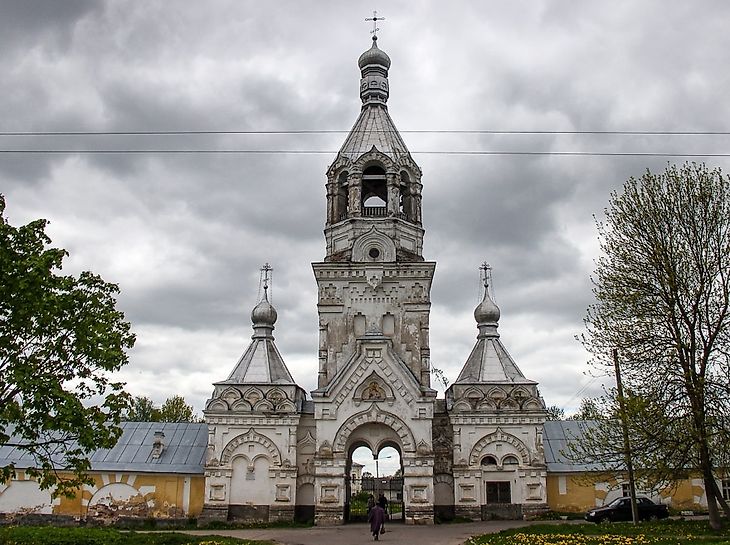 Покровский собор – это второй по величине храм в Великом Новгороде и один из самых молодых. Собор построен в 1901 году. Богослужения в храме проводились вплоть до 1930 года, а далее собор закрыли и переоборудовали под складские помещения.