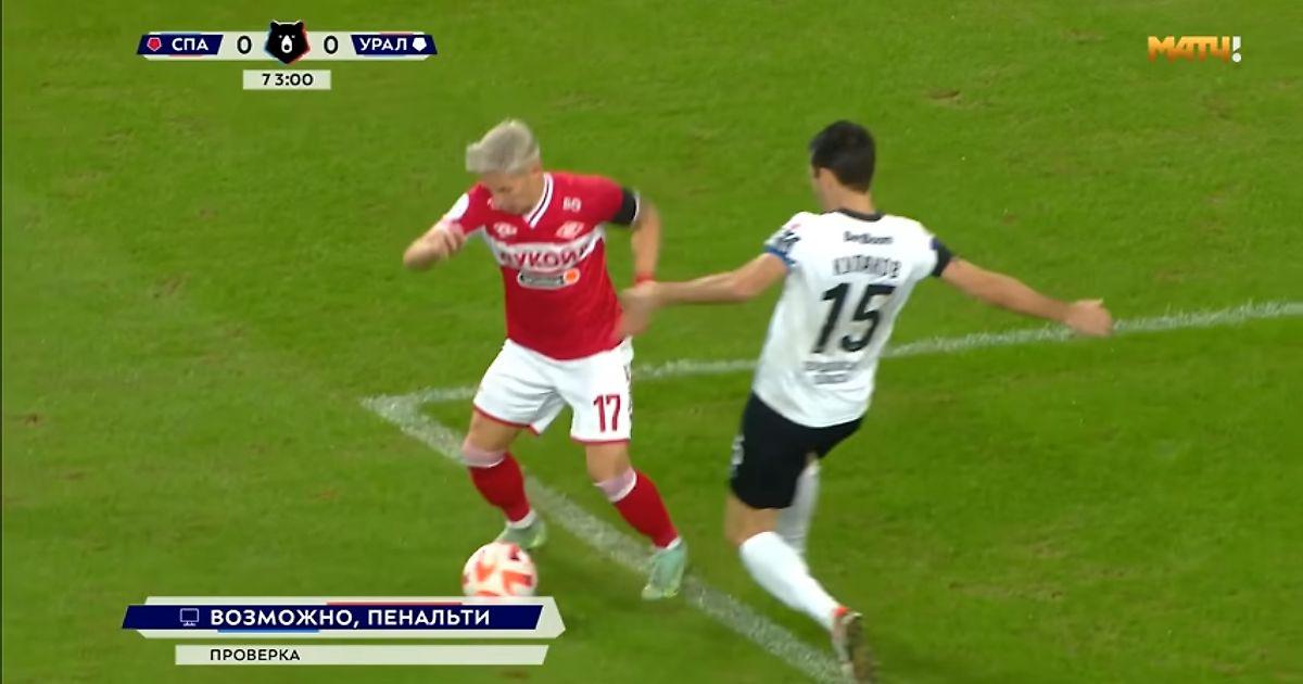 Да, Ильин ближе к вратарю, чем в других вышеприведенных моментах. Но мяч летит по недостижимой для вратаря траектории - он, как говорят, «отыгран». И вратарь даже не реагирует на удар. Но Мешков, которого позвал ВАР, признает «вне игры» активным. Исходя из вышеизложенного Мажич и будет вместе с ЭСК принимать решение на распутье: «Следовать установленным предыдущими Решениями правилам, защищать судей или угождать «сильным мира сего». Последняя фраза утверждения кажется лишней: ни Динамо, ни Ахмат к этой категории не относится. Но зато другой момент - вполне. Речь о игре Спартак - Урал и контакте Кулакова с Зиньковским. Скриншотами контакта «завален» весь Интернет, поэтому приведу не его, а скрин, помещенный в ленту блога, на долю секунды раньше: где располагается опорная часть ноги спартаковца, на которую наступил уралец?