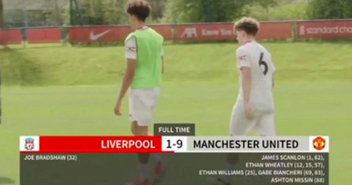 Юношеская команда «Ливерпуля» потерпела полный крах в игре со сверстниками из «Манчестер Юнайтед».