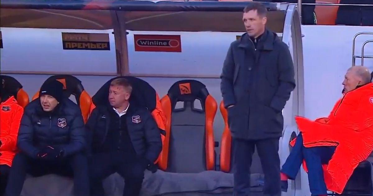 На 73-й минуте Бевеев снова грубо сносит Ежова и не получает предупреждения.