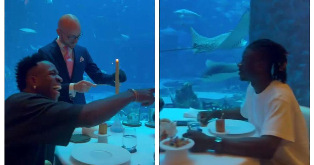 Красиво жить не запретишь: Винисиус и Камавинга устроили ужин внутри огромного аквариума и съели блюдо из горящей свечи