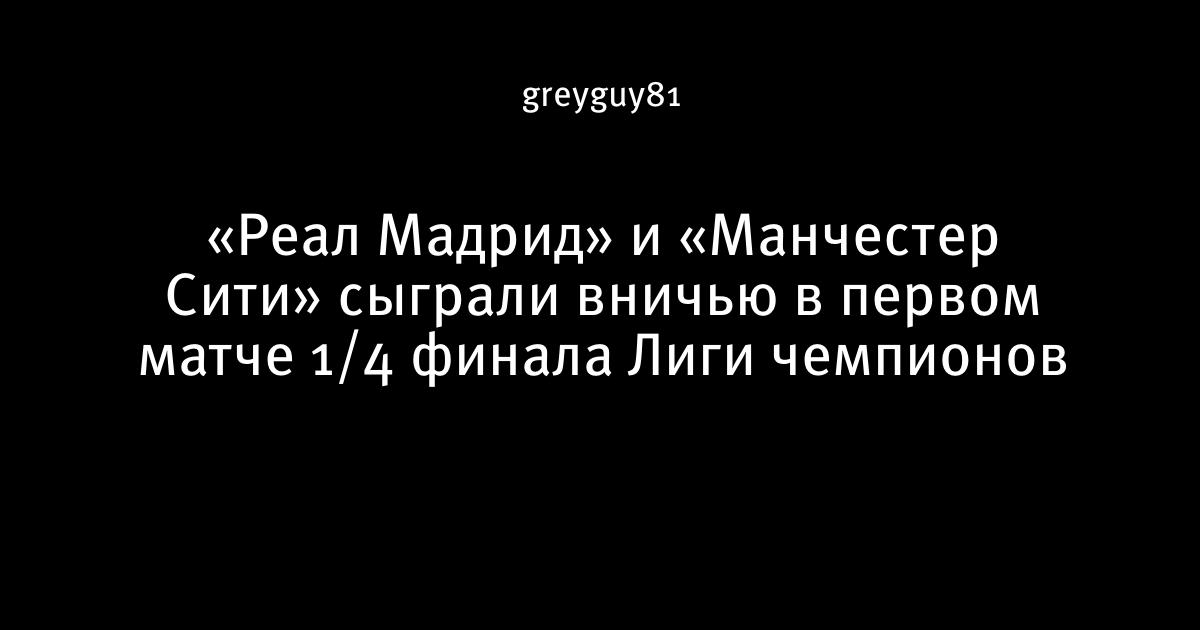 «Реал Мадрид» и «Манчестер Сити» сыграли вничью в первом матче 1/4 финала Лиги чемпионов