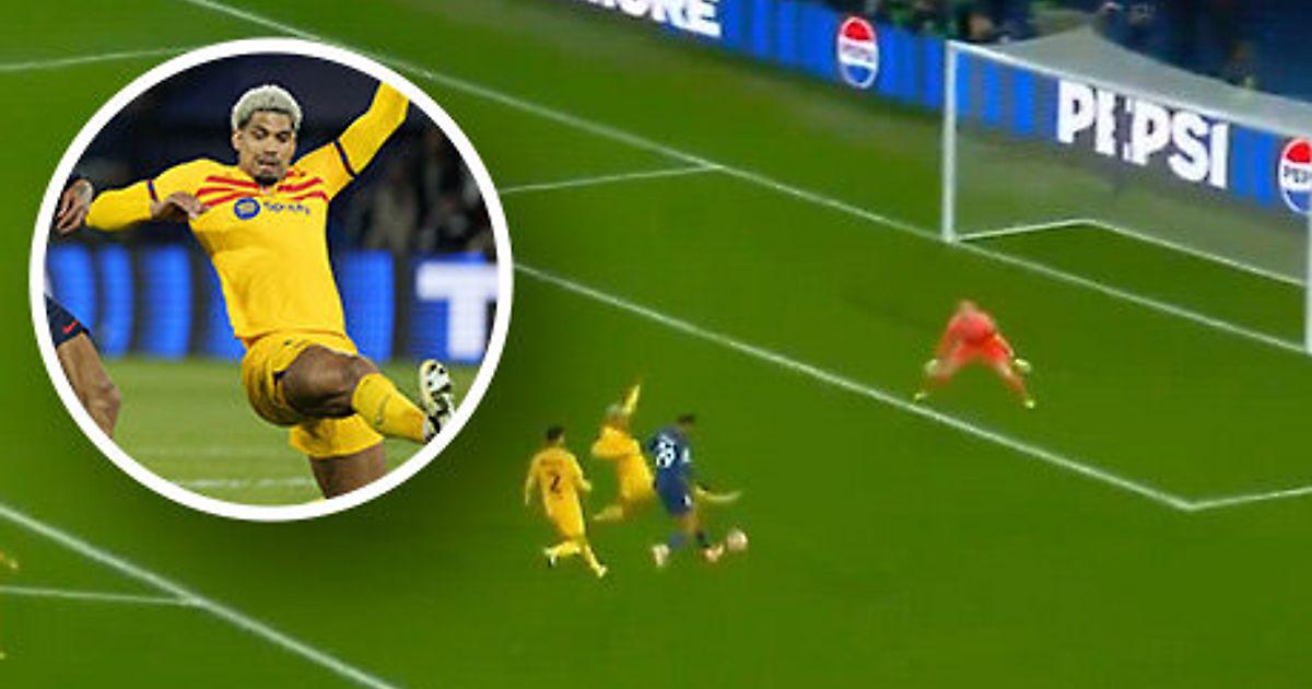 Брэдли Барколя выходит один на один. До ближайшего защитника минимум метр. И этот защитник не Араухо, а Жоау Канселу. Шансы на гол максимально высоки.