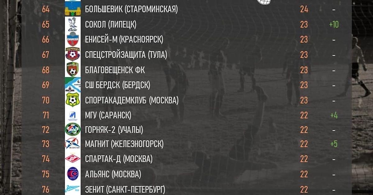 В этой двадцатке сильно выделяются школа Зоркого и липецкий Сокол.