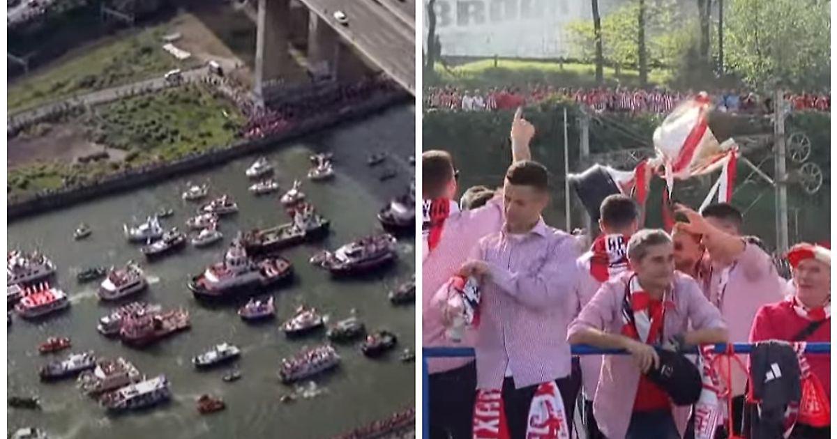 «Атлетик» необычно празднует победу в Кубке Испании. К футболистам присоединились десятки лодок и яхт
