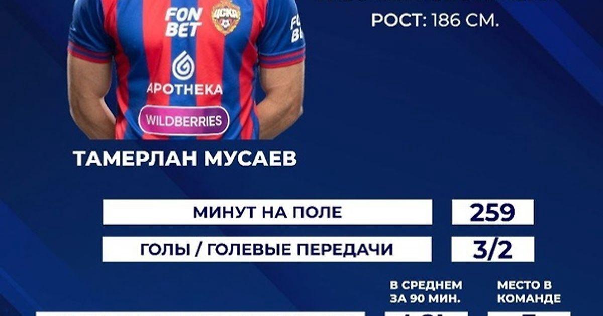 У Мусаева пять результативных действий за ЦСКА в 2024-м году (3+2). Это лучший результат в РПЛ
