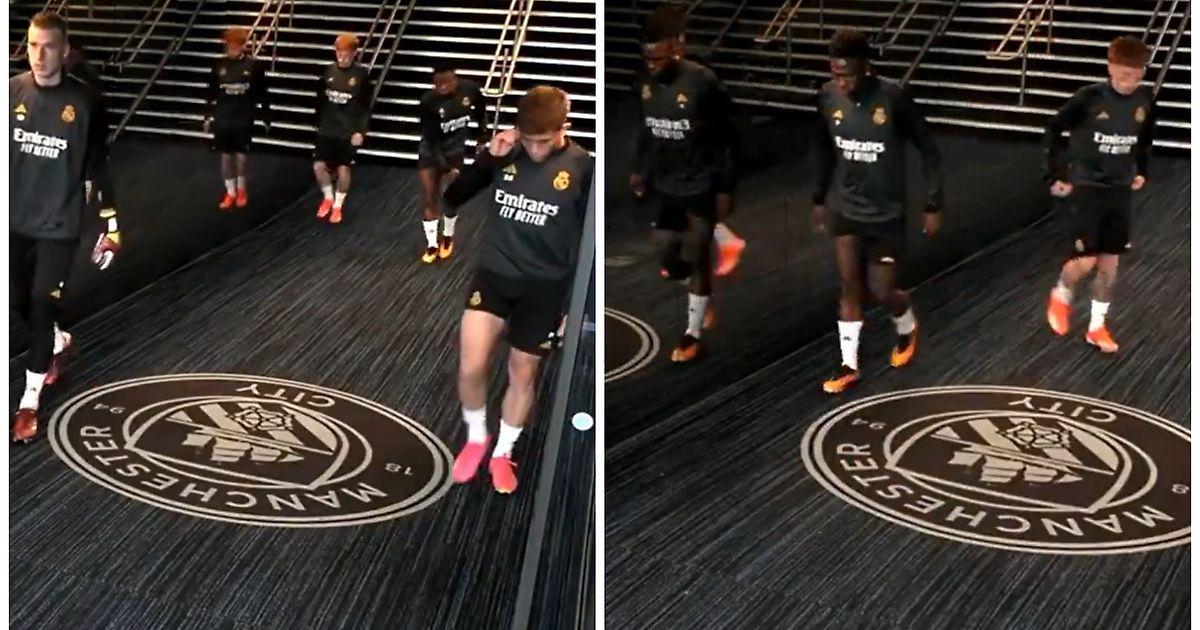 «Реал» уже приехал в Манчестер, и перед тренировкой на «Этихаде» игроки аккуратно проходили по ковру в подтрибунке - не наступая на эмблему «Сити».