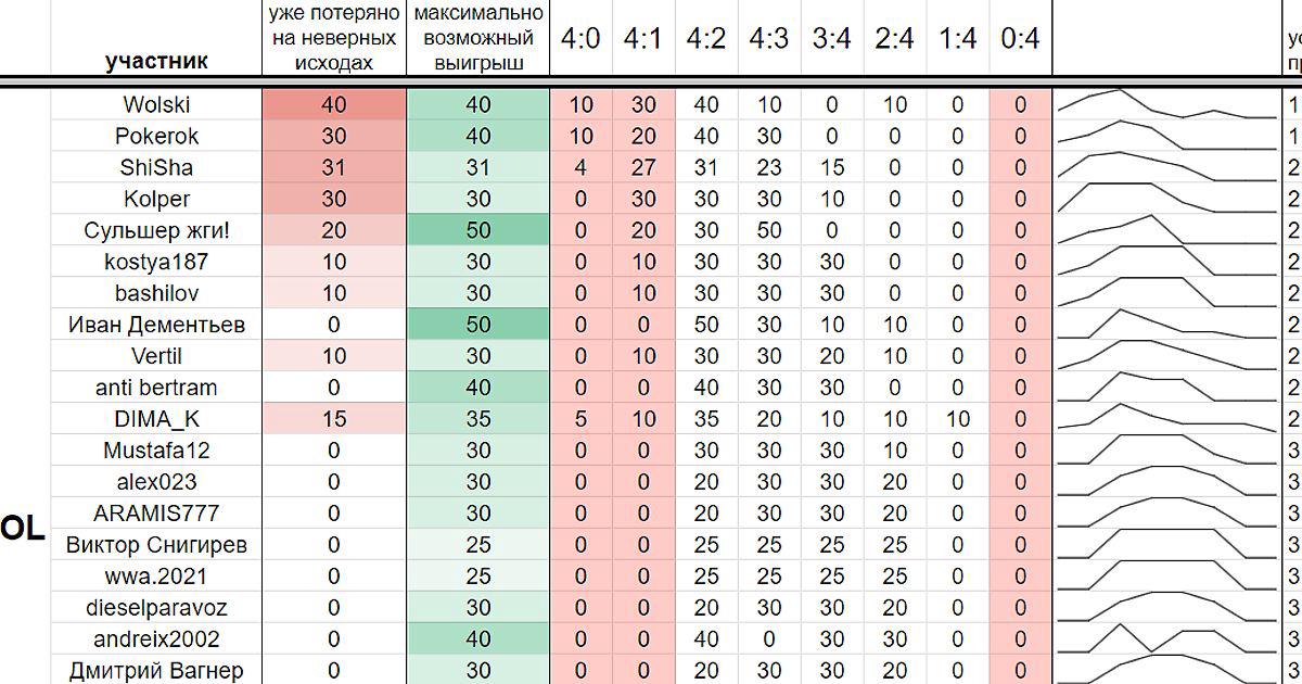 Правила я описал в анонсе турнира. Теперь делюсь сделанной таблицей результатов:
