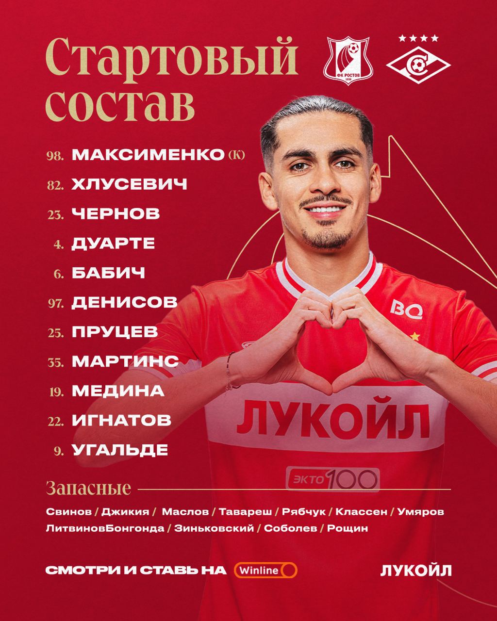 Состав красно-белых на сегодняшний матч