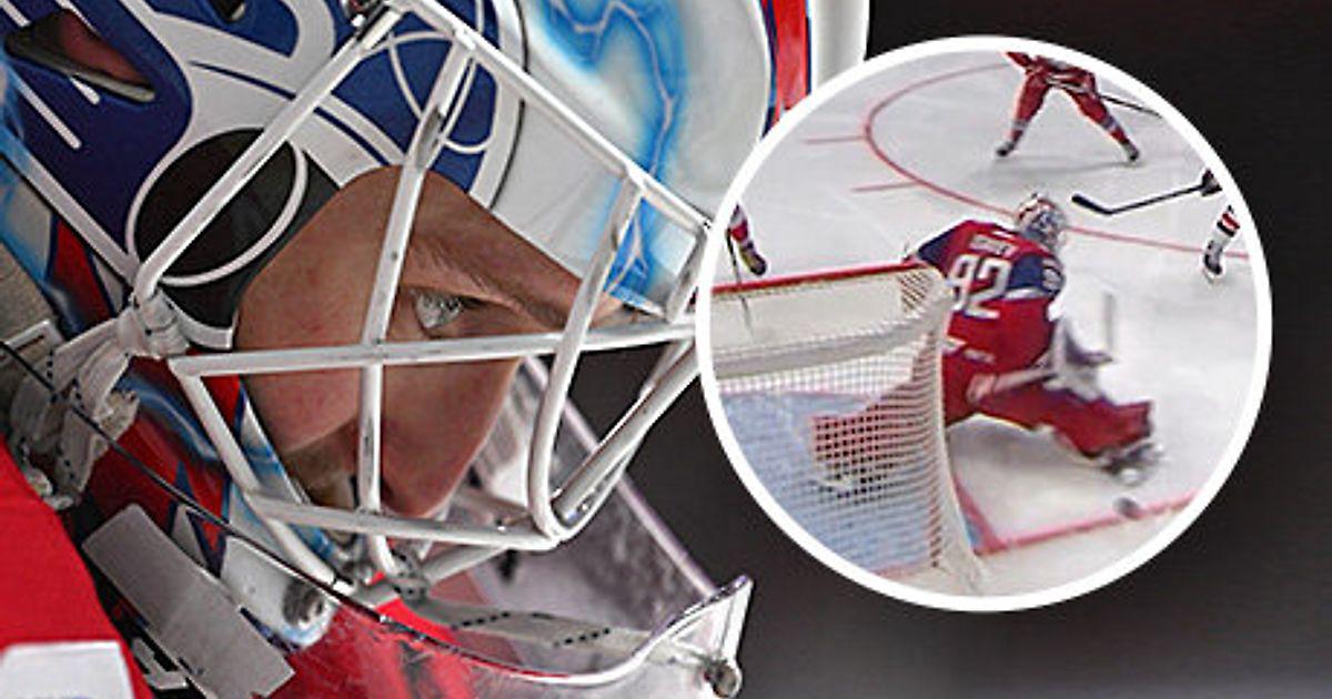 Вратарь среагировал, но не подстроился под отскок. В попытке перекрыть пустое пространство Исаев самостоятельно помог шайбе пересечь линию.