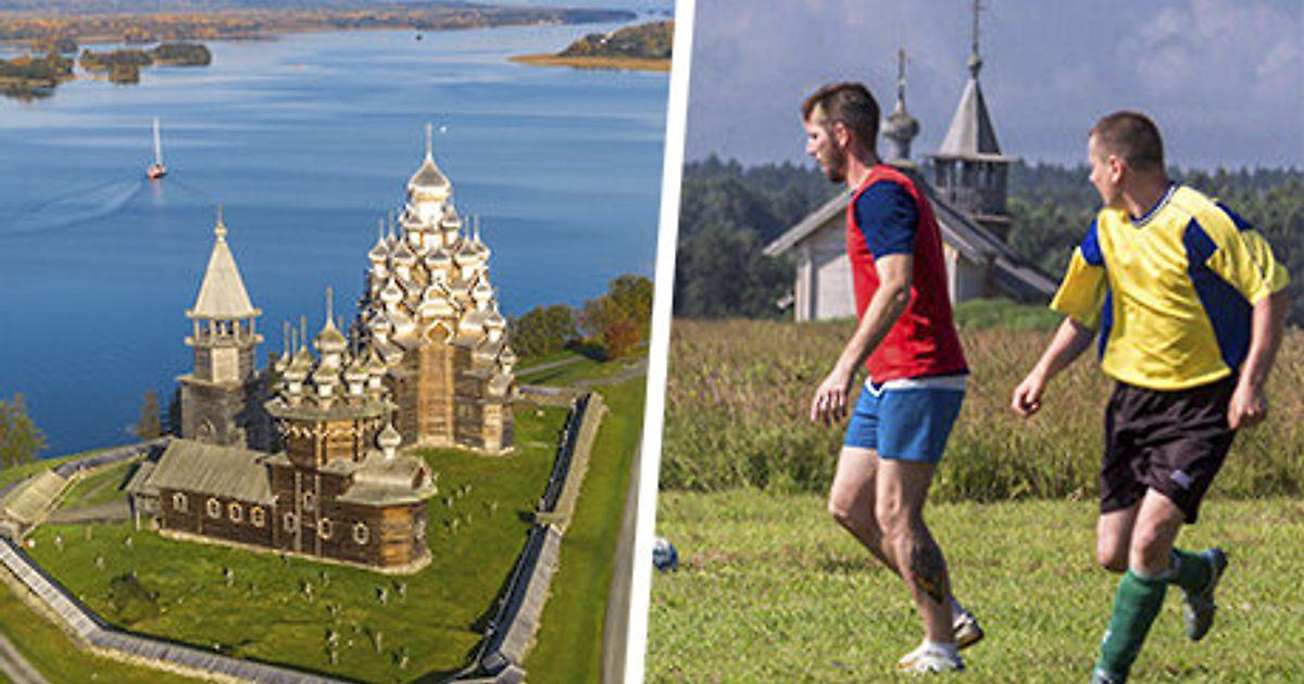 Оказывается, среди этой красоты уже больше двадцати лет играют в футбол: музей-заповедник «Кижи» проводит любительский турнир совместно с Федерацией футбола Карелии.