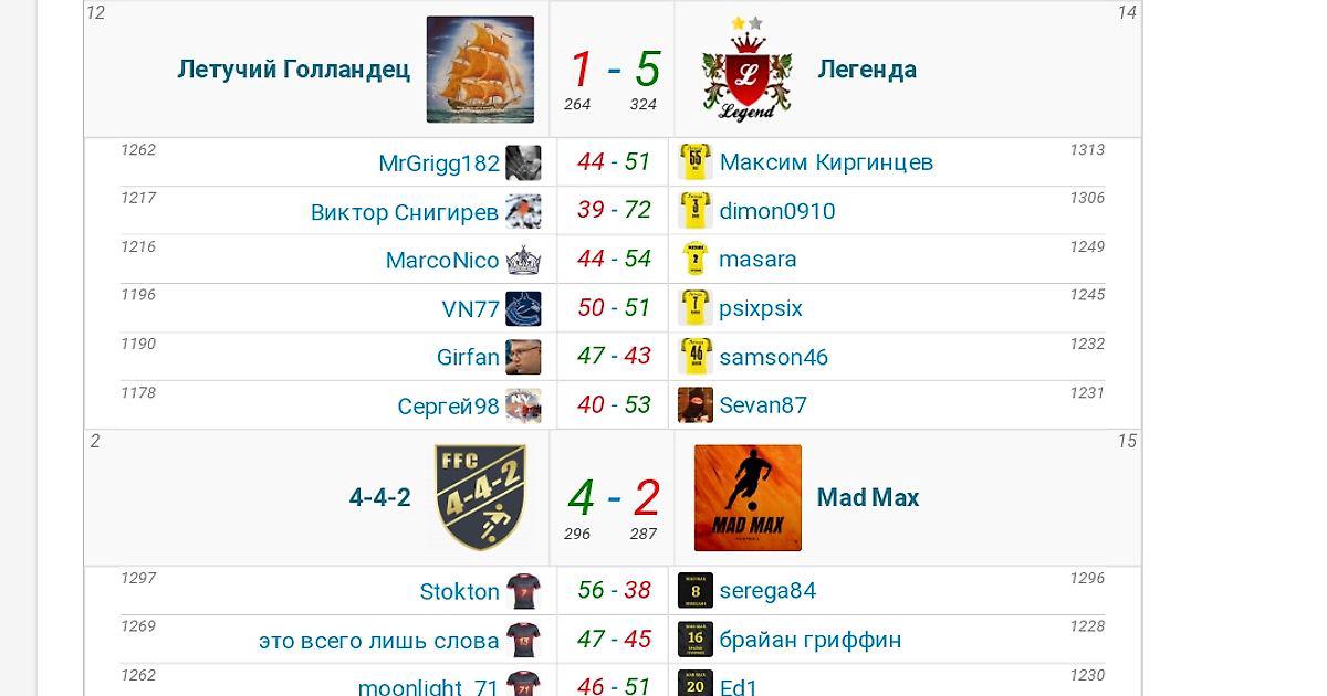 Идущая в зоне вылета Тёмная лошадка выигрывает у нас 4:2 и решающим стал фактор-х, они взяли Кордобу кепом , а мы Кассьера((. Но пик в лице Роналдо может и спасти нас. Такое бывает- Зенит не первый раз нас подставляет, ТО Краснодар на выезде не заметит, то проигрывает дома Рубину . Наша беспроигрышная серия насчитывает больше 7 матчей и дальше хотим ее продолжить, но это будет сделать очень сложно. Как по мне максимум что нам светит это ничья, но мы не расстраиваемся- это сделать нас ещё сильнее и всё получится. Отмечу участников - basyrov-2000, vlad справляются с командной работой. Следует у них получится всем. По другим матчам---- топ тура принадлежит по праву Red ордену и Гомелю .Более семи матчей не проигрывают оба, логичным исходом тут будет ничья. Ну посмотрим как сыграют коллективы - много у парней ростовчан и армейцев, будет интересно. Легенда в этом туре после проигрыша без вариантов у нас в. прошлом туре, в этом выигрывает Ну и играет довольно-таки неплохо. Я думал что мы этих отцепили во 2 дивизион, но они пока барахтаются. Немножечко барахлит Арарат- интеллектуально развитый тим, в любом случае парни, думаю заслужили выход в высшую Лигу. Mad Max конечно же команда неплохая , но что-то не удаётся у ребят в следующем турнире у них всё будет намного получше. Так что, ставьте плюсы, комментируйте, критикуюйте сей пост. И да, на следующий сезон у нас проходит набор в команду, поэтому вменяемых и адекватных людей просим в нашу франшизу💪