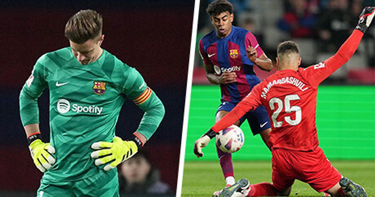 Тер Стеген привел гол в пустые, Мамардашвили поймал красную