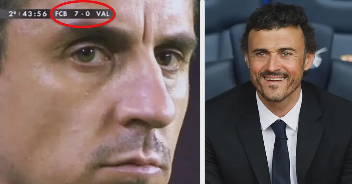 🫠 «Вот ублюдок». Невилл вспомнил, как «Барса» Энрике разгромила его «Валенсию» со счетом 7:0, а потом Луис не пожал ему руку 😆