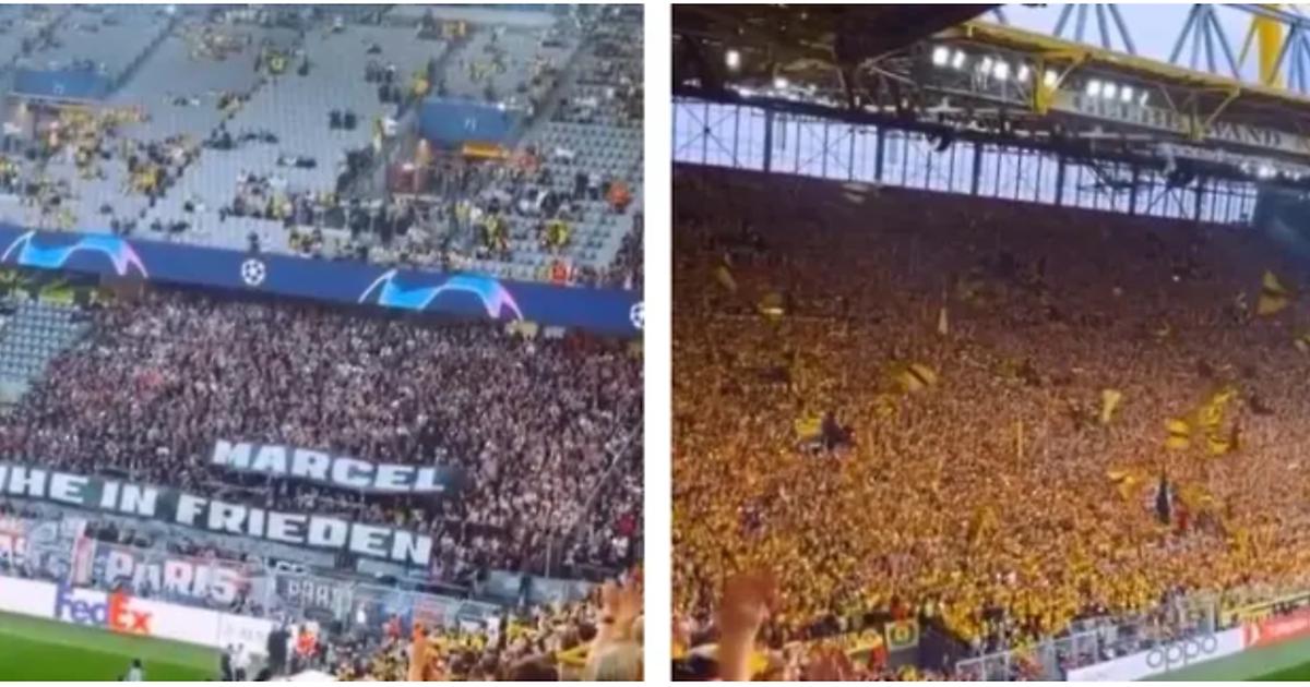 На «Вестфаленштадион», известный своей фантастической атмосферой, приехали 4 тысячи поклонников «ПСЖ». Им, конечно, не удалось перекричать шумных фанатов «шмелей», но они сделали красивый жест в адрес соперника.