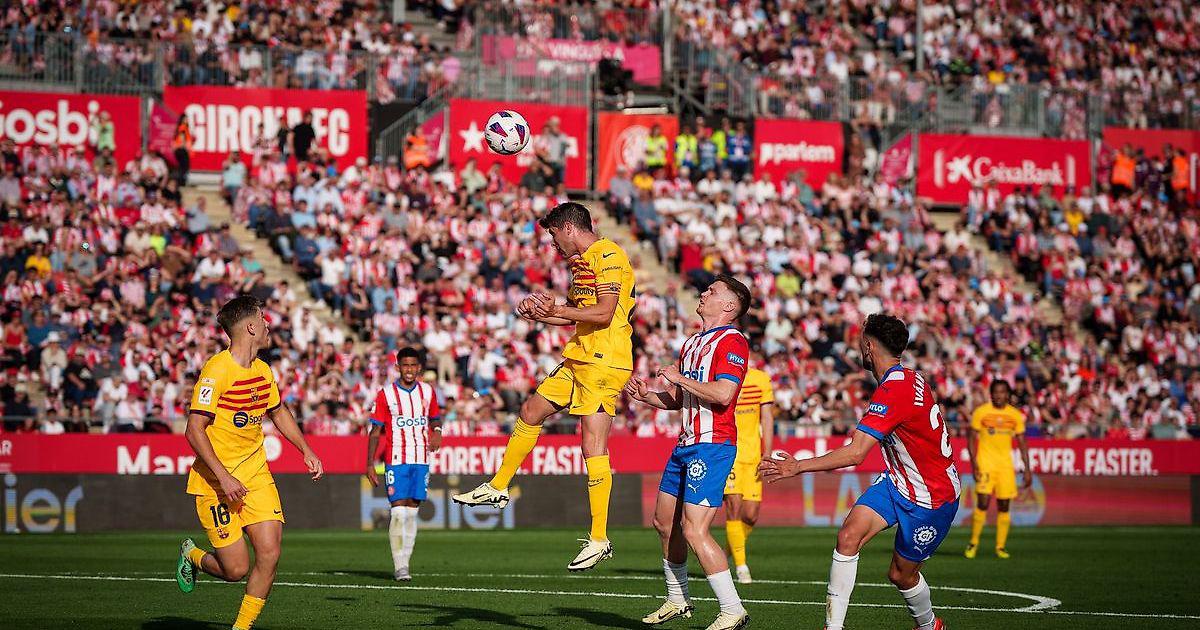 В защите все равно продолжался бардак, ну вот смотрите, Жирона тут круто вылезла из-под прессинга за счёт открывания вот этого игрока, очень круто ушел ближе к флангу, Кристенсен не ожидал, но что происходит дальше, снова какой-то непонятный подкат, хорошо еще не пенальти, но и не в мяч, ну вот зачем, если Куанде итак догонял, не могу все равно понять я таких подкатов, благо есть Тер Штеген. Хотя с другой стороны французу чуть не повезло, был бы крутой подкат, и я бы ни слова не сказал, но всегда надо помнить, что подкат - это риск, потому что лежа ты уже в отыгранном положении.