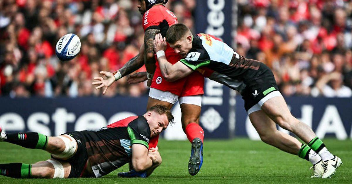 «Арлекины» в этом году уже сломали стереотипы о своей игре, дойдя аж до полуфинала, поэтому попытке в силовом стиле (больше похожим на своих соперников) удивляться не стоит. Маркус Смит завершил начатое партнёрами. И сам же забил реализацию. 5:7 – лондонцы лидируют. Игра раскрылась. В центре поля мяч отбирают то одни, то другие. На 18-й минуте «Тулуза» ставит мол, и заносит Пито Маувака. Кингхорн с подставки тоже не промахивается. «Арлекинс» идут отыгрываться. Луи Лайна бьёт 50-22. Лондонцы ставят мол, результатом которого становится попытка Уилла Эванса. Смити, жаль, промахивается с подставки. 12:12.