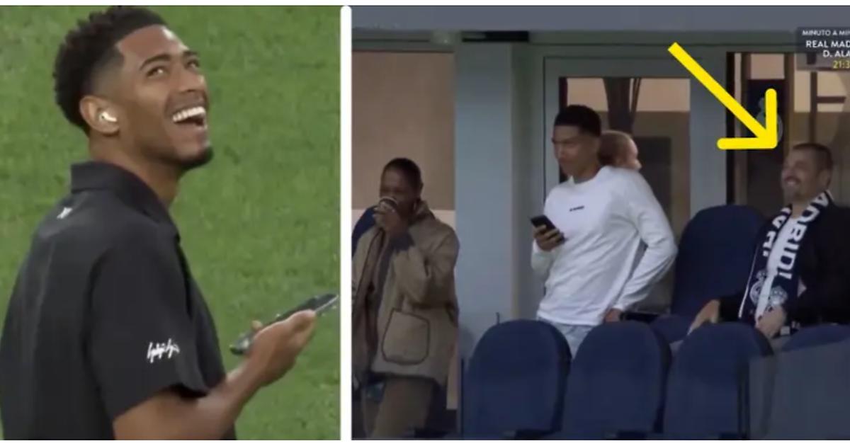 Еще до матча отец Джуда, Марк, немного поднял сыну настроение. Когда англичанин заметил на трибунах родных, Марк изобразил фирменное празднование старшего сына. Игрок «Мадрида» широко улыбнулся и сфотографировал близких.