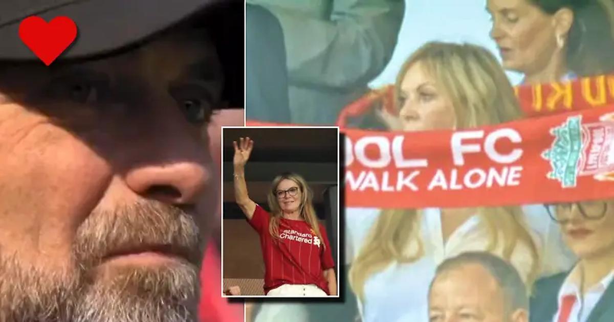 В этот трогательный момент камеры также заметили жену Клоппа Уллу, которая держала в руках шарф «Ливерпуля» и пела YNWA.