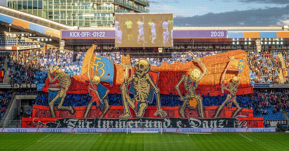 Практически одновременно с Чехией завершился сезон и в Швейцарии — там тоже чемпион известен заранее (им стал «Янг Бойз»), как известно и имя неудачника, покинувшего высший дивизион — это «Лозанна Уши». Остается финал кубка страны, а также стыковые матчи за право сыграть в главной лиге страны, но все это уже пройдет мимо «Базеля», для которого нынешний сезон получился просто катастрофическим. К концу 2023 года клуб вообще шел на последнем месте в чемпионате, а в октябре болельщики не смогли даже выбрать лучший гол месяца, так как в том месяце «Базель» не забил ни одного гола в четырех встречах. Лишь в новом году клуб поднялся со дна — этому поспособствовал приход на пост главного тренера экс-полузащитника сборной Швейцарии Фабио Челестини. Тем не менее, «Базель» не смог попасть в первую половину таблицы, из-за чего в финальной части чемпионата, когда команды разделяют на 2 группы (в первой идет борьба за чемпионство, а во второй все пытаются не вылететь), клуб оказался в числе тех, кто боролся за выживание. Поэтому ультрас клуба настолько устали от этого сезона, что мечтали, чтобы он поскорее закончился. На домашней игре против «Ивердона» они сделали классное хорео «Всегда танцуй», в котором изобразили танцующие скелеты, облаченные в цвета «Базеля». Фоном служил пейзаж некоторых зданий города.