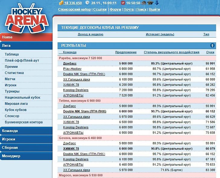 В менеджере пользователи соперничают друг с другом в искусстве управления хоккейным клубом. О величии игрока свидетельствует положительный финансовый баланс, вместительный стадион, а главное — победы в топовых лигах.