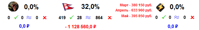 Порядок навёл,всё посчитал. Событий сегодня не много, так, что придётся играть ... женский теннис)).