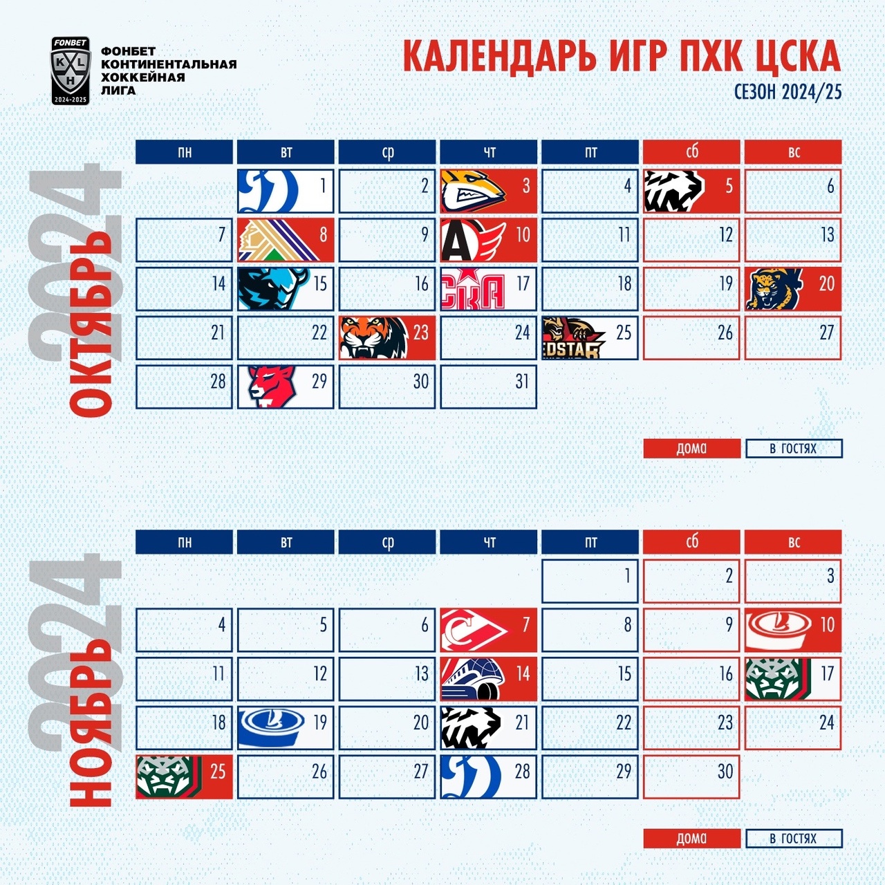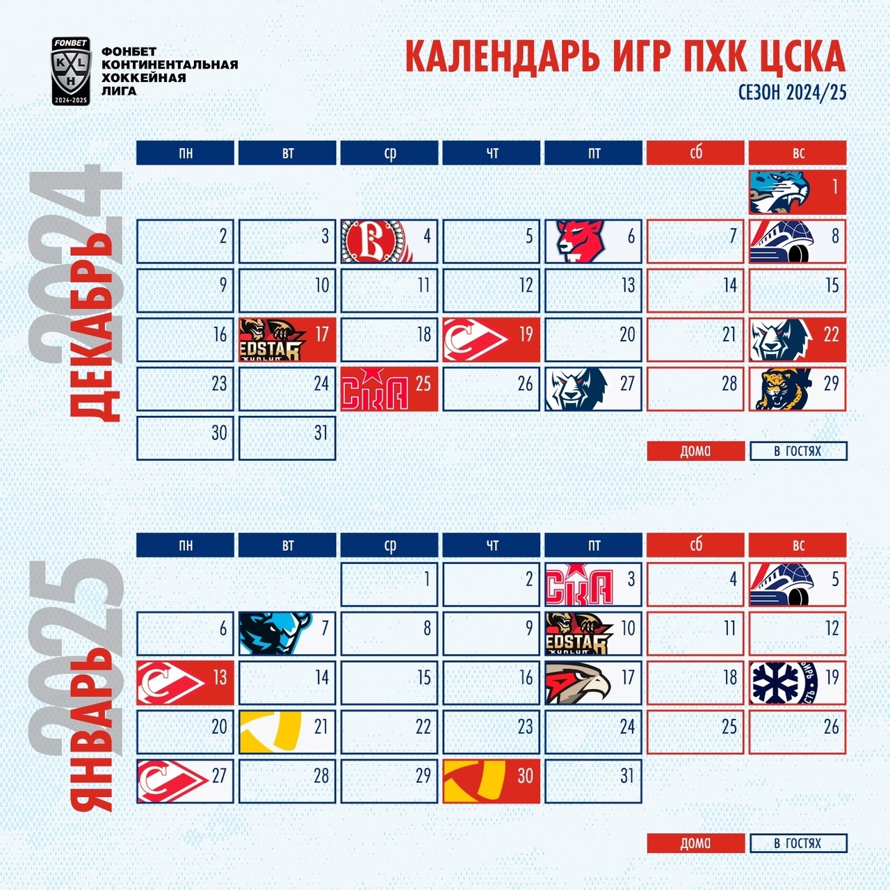 Календарь матчей ЦСКА в сезоне 2024/25!