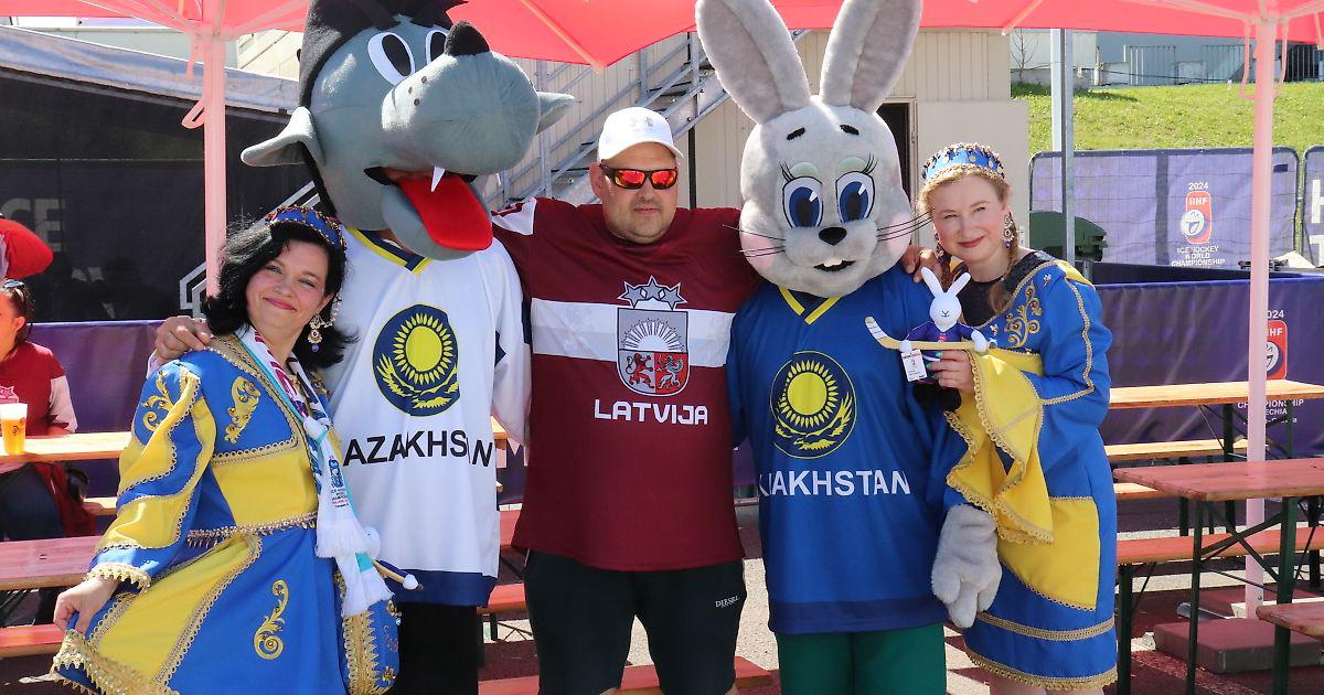Друзья из обожаемой мною Риги тоже прибыли в Остраву и мы встретились перед матчем сборной Латвии и Франции возле фан-зоны, где собралась огромная армия латвийских фанатов. Алексей Кретов, с которым мы случайно познакомились после ЧМ-2022, когда я возвращался на родину из воздушной гавани столицы Латвии приехал с супругой и друзьями. Пообщавшись и сделав несколько фотографий на память, обменялись подарками: Алексей привез из Латвии несколько бутылок рижского бальзама, шайбы и сладости, а я вручил казахскую тюбетейку на добрую память о встрече на чешской земле. А его товарищ, наслышанный о моей любви к Латвии, с улыбкой поинтересовался: «за кого будешь болеть в матче Казахстан-Латвия?». Затем мы несколько раз виделись на трибунах, когда играла сборная Латвии, а я переживал за латышей как за родных.
