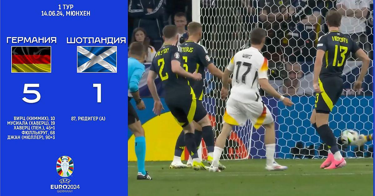 Уже все написали, а по счёту и так видно, что Шотландия забыла приехать на матч. Даже гол Германии забили немцы после красивейшего удара головой Рюдигера. Скука наступила очень быстро, у скоттов даже выделить было некого кроме несчастного вратаря.