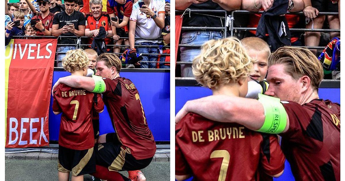 После матча один из лидеров бельгийцев полузащитник «Манчестер Сити» Кевин Де Брюйне прямо на кромке поля утешал своих детей.