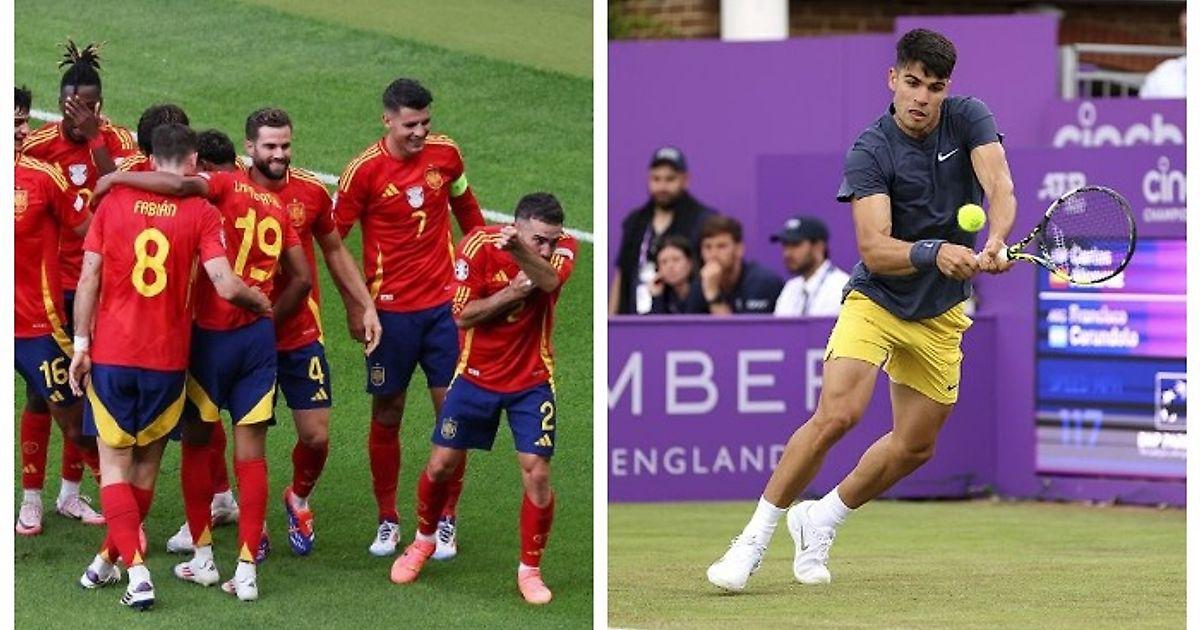 Недавно Карлос играл в футбол теннисным мячом с Кареном Хачановым, а теперь попросил организаторов турнира в Лондоне АТР500 поставить его матч с Джеком Дрэйпером пораньше, чтобы успеть на сегодняшний матч между Италией и Испанией.