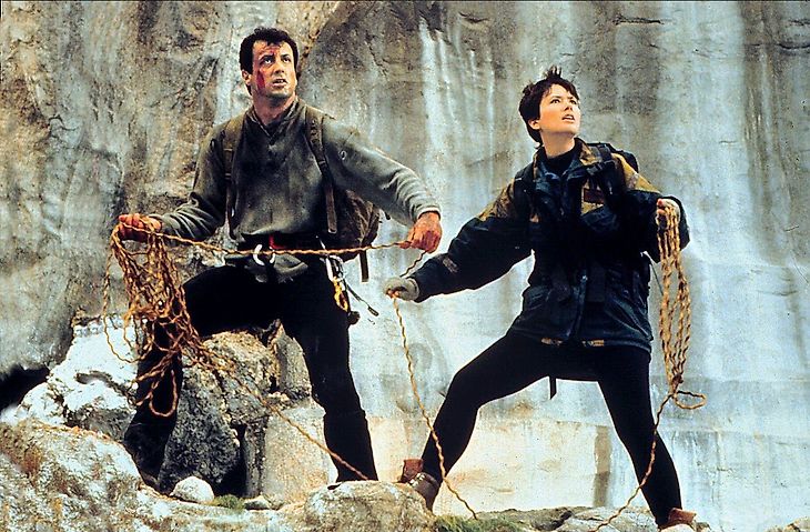 Спасателя Гейба Уокера играет Сильвестр Сталлоне. Он бесстрашен, но сейчас переживает серьезный кризис. Девять месяцев назад он не смог спасти молодую альпинистку, которая пропала в горах. Гейб так сильно винит себя в смерти девушки, что бросает работу и планирует переезд в другой город. Когда он приезжает на базу, чтобы забрать вещи и попрощаться с коллегами, поступает сообщение о попавших в беду альпинистах. Гейб не может бросить людей в опасности и вместе с напарником Хэлом отправляется в финальную спасательную экспедицию. На деле это ловушка, которую подстроили преступники. Профессиональные скалолазы им нужны как проводники, чтобы найти чемоданы с деньгами в горах, разбросанные в разных точках после крушения самолета. Гейб и Хэл понимают, что в живых их не оставят, поэтому начинают действовать по своему плану.